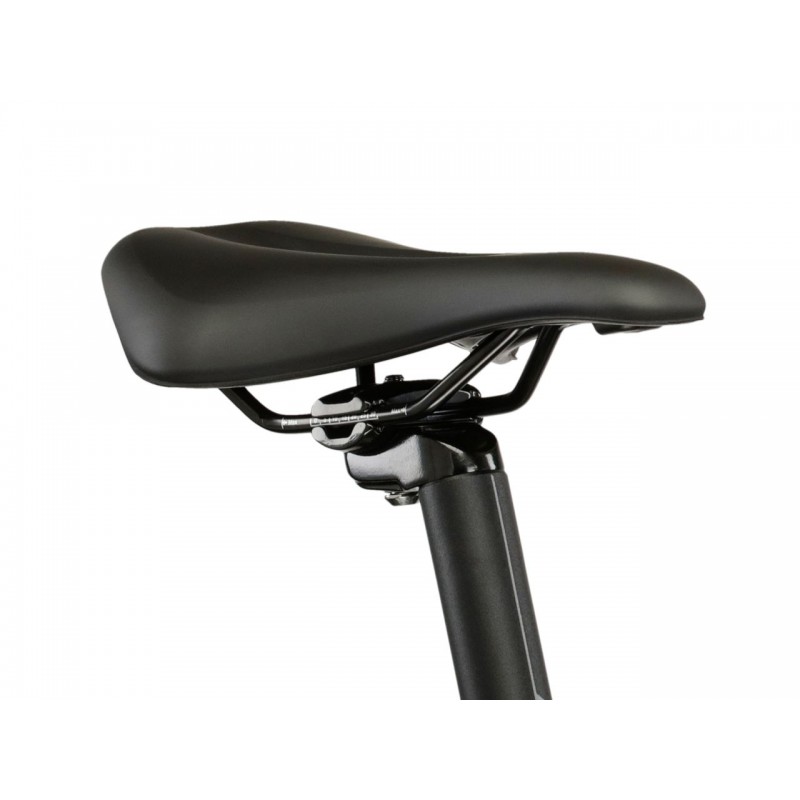 Amortyzowany widelec ze skokiem 100 mm zapewnia wysoką kulturę pracy oraz doskonałe tłumienie wibracji powstających podczas jazdy po nierównej i wyboistej nawierzchni.