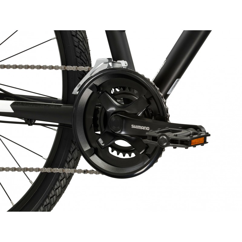 Amortyzowany widelec SR Suntour ze skokiem 63 mm sprawi, że bez problemu dojedziesz do miejsca docelowego bez martwienia się o krawężniki czy kostkę brukową. W lesie natomiast możliwa będzie jazda bez obaw o kamienie czy korzenie.