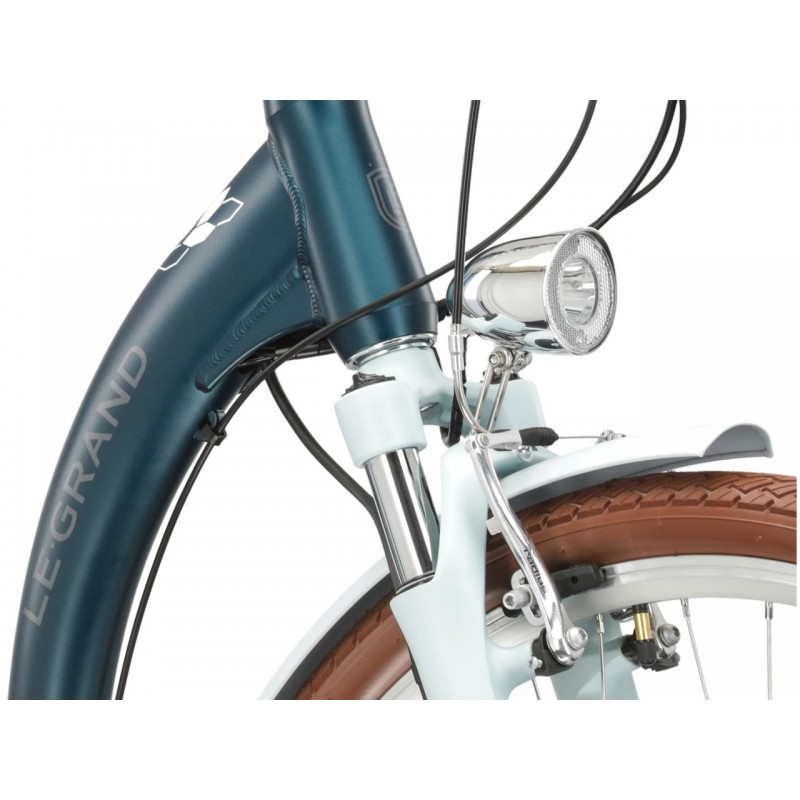Rama Le Grand Elille 2 została wykonana z aluminium 6061. Ten specjalny stop aluminium sprawia, że rower jest sztywny i odporny na złamania. Jednocześnie, jest to stosunkowo lekki materiał, który może zaskoczyć niejednego rowerzystę swoimi właściwościami. Rama jest malowana proszkowo, co przekłada się na trwałość malowania oraz odporność lakieru na uszkodzenia mechaniczne.