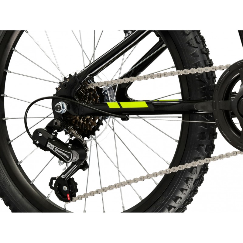Rower wyposażono w 6-biegowy napęd Shimano, który pozwala na łatwe dopasowanie przełożeń do warunków jazdy. Tylna przerzutka Shimano Tourney TY21 jest trwała i niezawodna, zapewniając płynną zmianę biegów.