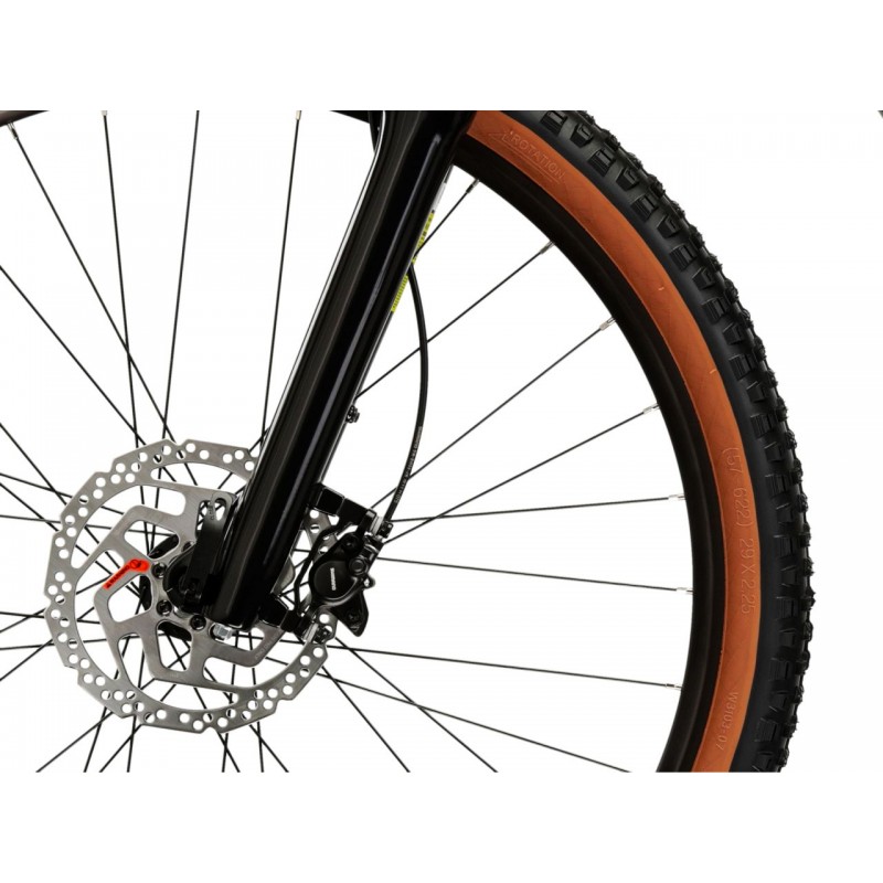 Amortyzowany widelec SR Suntour ze skokiem 100 mm zapewnia wysoką kulturę pracy oraz doskonałe tłumienie wibracji powstających podczas jazdy po nierównej i wyboistej nawierzchni.