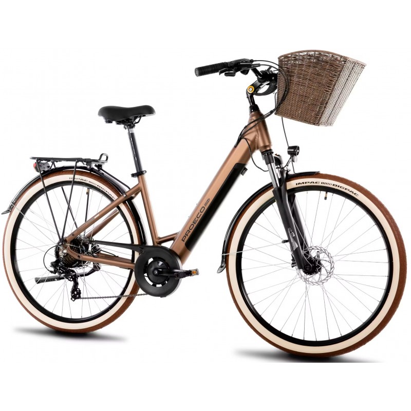 Rower elektryczny damski PROECO WAVE AN 1.0 504WH + kosz