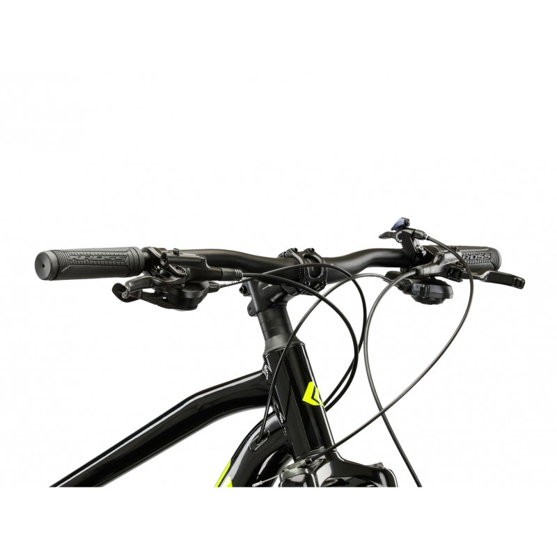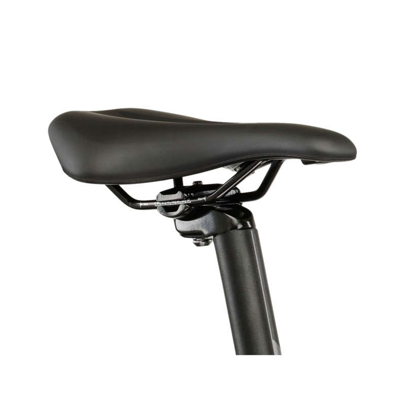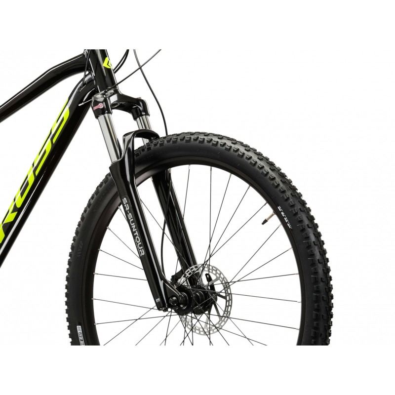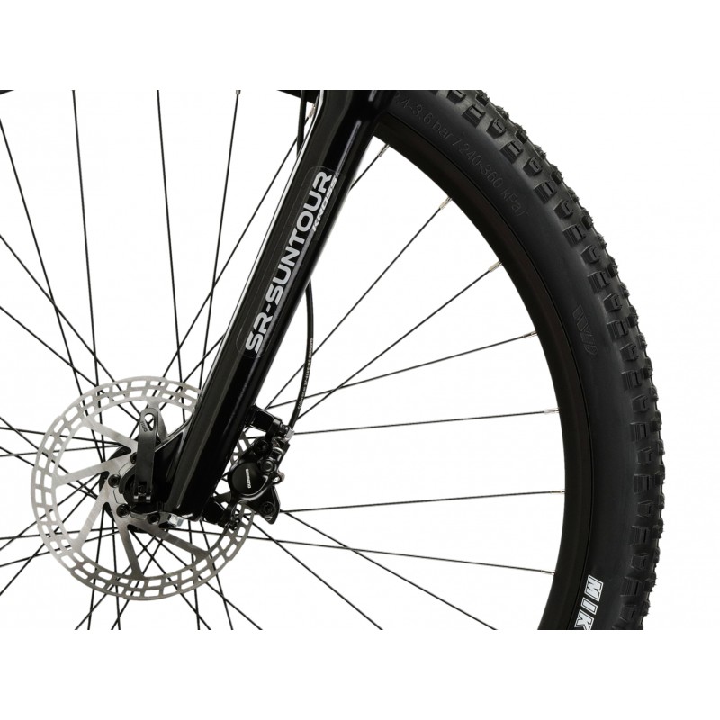 Amortyzowany widelec SR Suntour ze skokiem 100 mm zapewnia wysoką kulturę pracy oraz doskonałe tłumienie wibracji powstających podczas jazdy po nierównej i wyboistej nawierzchni. Dodatkowo, na kierownicy znajduje się manetka blokady amortyzatora, która umożliwia zwiększenie efektywności pedałowania na płaskich odcinkach drogi.