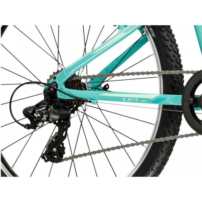 Rower KROSS Lea JR 24 został wyposażony w napęd w systemie 1x8. Umożliwi to sprawne pokonywanie podjazdów oraz szybką jazdę po płaskich odcinkach. Tylna przerzutka od Shimano to trwała i sprawdzona konstrukcja, która zapewnia płynną zmianę przełożeń.