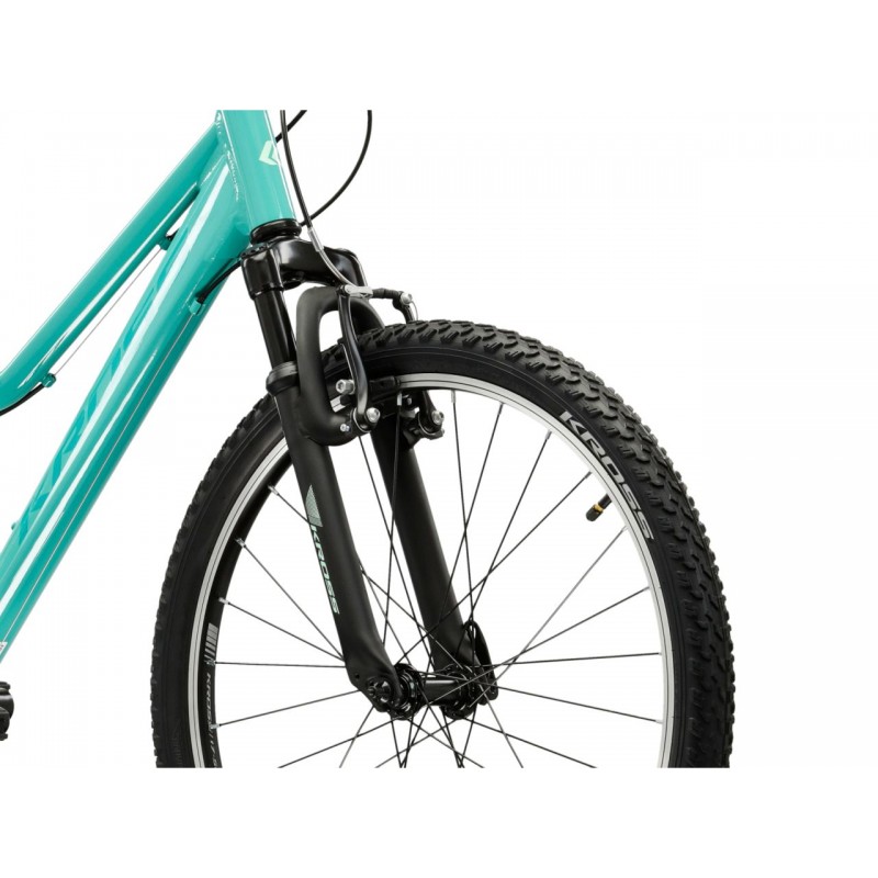 Rama KROSS Lea JR 24 została wykonana z aluminium 6061. Ten specjalny stop aluminium sprawia, że rower jest sztywny i odporny na złamania. Jednocześnie, jest to stosunkowo lekki materiał, który może zaskoczyć niejednego rowerzystę swoimi właściwościami. Rama jest malowana proszkowo, co przekłada się na trwałość malowania oraz odporność lakieru na uszkodzenia mechaniczne.