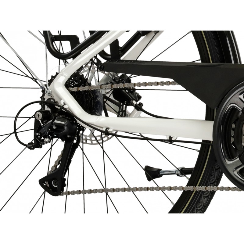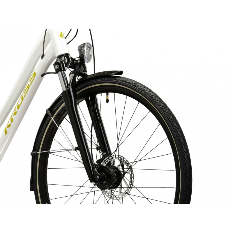 Zintegrowane z rowerem oświetlenie ułatwi jazdę po zmroku, a wysokiej jakości siodełko Selle Royal zachwyci Cię komfortem, jaki zaoferuje Ci podczas pokonywania długich tras. Dodatkowo, siodło zostało osadzone na amortyzowanej sztycy, co niweluje drgania powstające podczas jazdy po nierównościach.