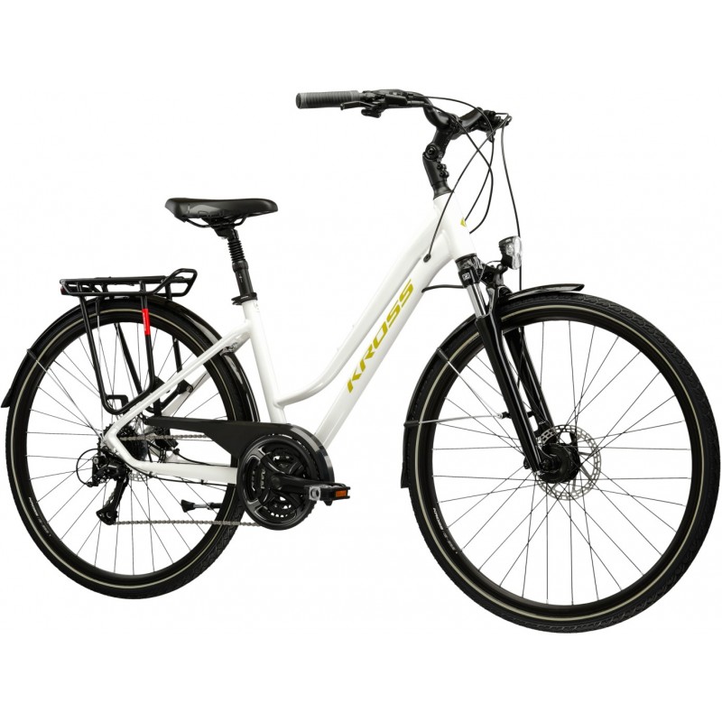 Rower Kross PG Pulser TR 5 to rower turystyczny łączący cechy przydatne podczas rekreacyjnych wypraw, jak i codziennego zastosowania. Lekka, aluminiowa rama oraz amortyzowany widelec SR Suntour zapewniają komfort jazdy zarówno po asfalcie, jak i w trudniejszym terenie. Napęd Shimano w systemie 3x8 umożliwia płynne dostosowanie przełożeń do każdej trasy, a hydrauliczne hamulce tarczowe gwarantują bezpieczeństwo i kontrolę. KROSS Trans 4.0 został zaprojektowany, aby zapewnić jak największy poziom komfortu zarówno podczas wypraw za miasto, jak i podczas dojazdów do pracy.