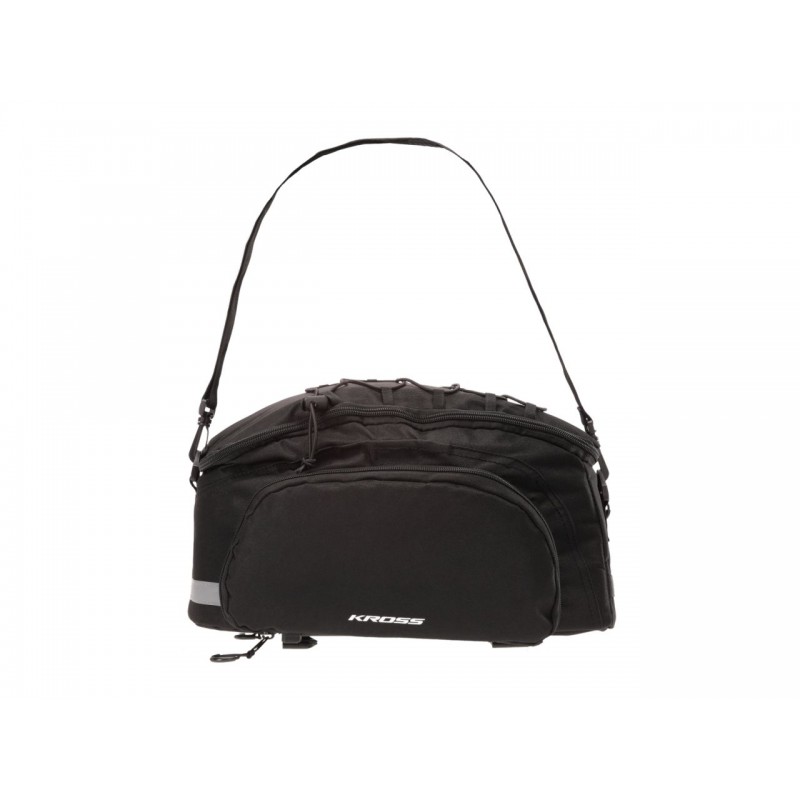 Torba Roamer Trunk Big Bag Carry More jest modelem przystosowanym do szybkiego zamykania, który występuje w bagażnikach Kross z systemem Carry More. Technologia ta pomaga w szybki i stabilny sposób zamocować torbę na bagażniku za pomocą jednego przycisku. Sakwa rowerowa wykonana została z niezwykle trwałego materiału, który jest odporny na uszkodzenia czy otarcia. Torba posiada zgrabny kształt, który świetnie pasuje zarówno do rowerów miejskich, jak i górskich. Produkt posiada główną komorę wraz z ustawnym organizerem. Poza tym wyposażony jest w dwie boczne kieszenie i pasek odblaskowy, który można dostrzec ze znacznej odległości. W zestawie znajduje się pasek, który służy do noszenia torby na ramieniu, co jest bardzo wygodnym rozwiązaniem. Torba Roamer Trunk Big Bag Carry More More waży nieco ponad 1 kg.